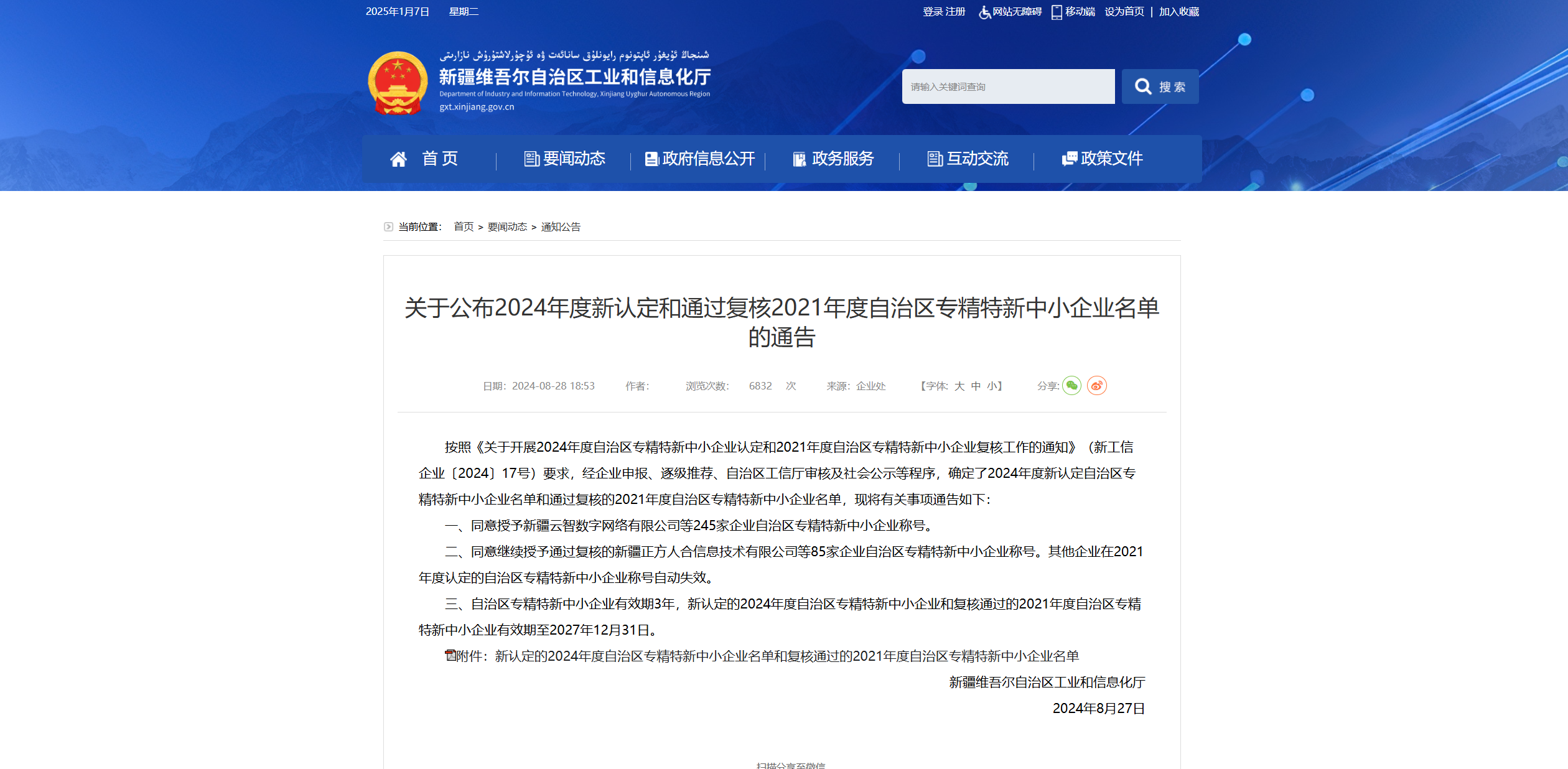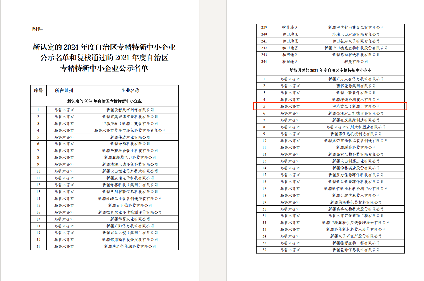 中冶重工(新疆)有限公司通過自治區(qū)專精特新中小企業(yè)復(fù)核認(rèn)定