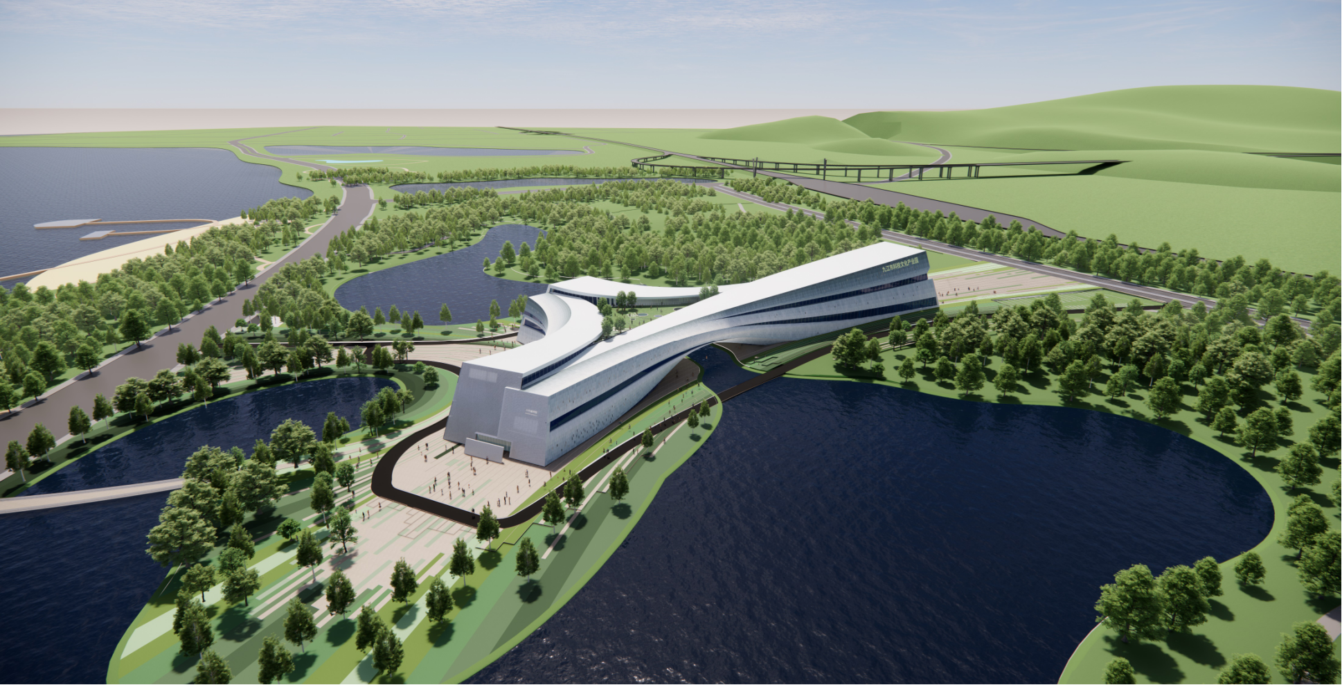 該項(xiàng)目位于江西省九江市八里湖新區(qū),總用地面積約70畝,總建筑面積約4.5萬平方米,建筑結(jié)構(gòu)與層高為混合6層。其中科技館、美術(shù)館、非遺館建筑面積分別約為2.5萬平方米、1萬平方米、1萬平方米。建筑高度為38.8米,綠地率為30%。