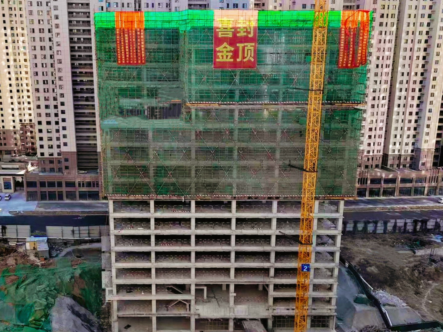 華中公司菏澤西廂名苑項(xiàng)目2號(hào)樓主體結(jié)構(gòu)封頂